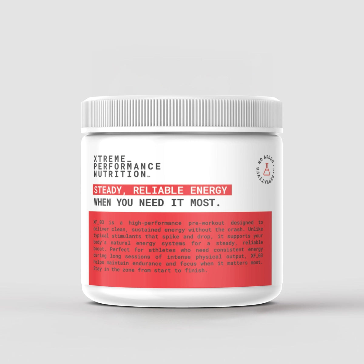 XF_03 combines multi-source carbohydrates, amino acids, creatine, beta-alanine, and targeted micronutrients to support both energy production and muscular performance.Instead of relying on harsh stimulants, XF_03 delivers controlled energy, improved endurance capacity, and enhanced focus — allowing you to train harder without the post-workout crash.